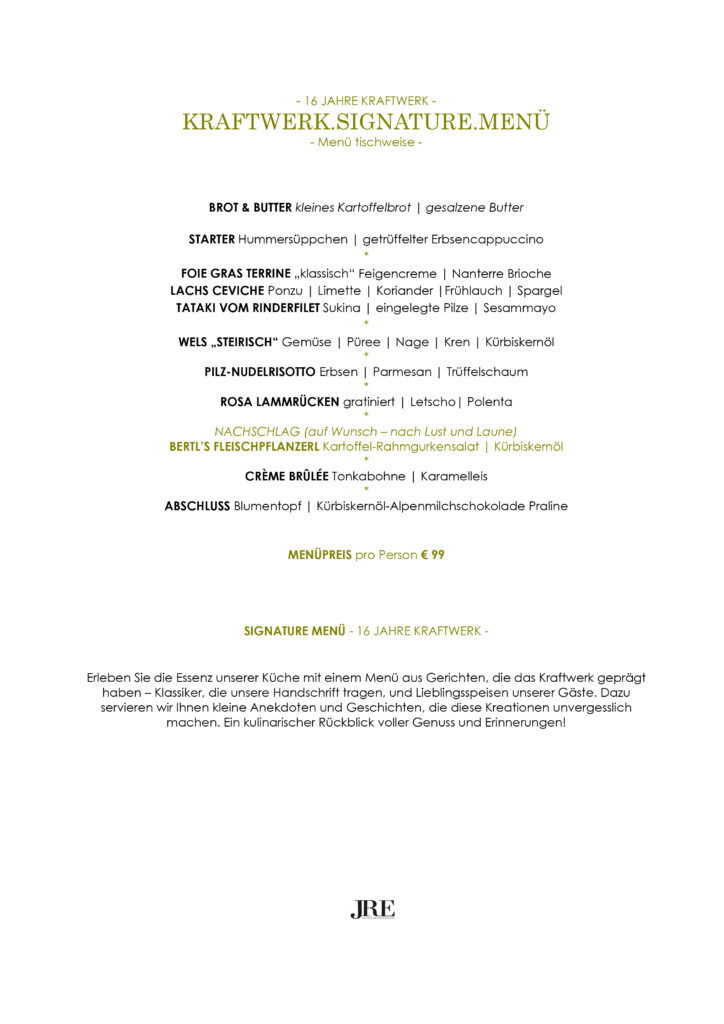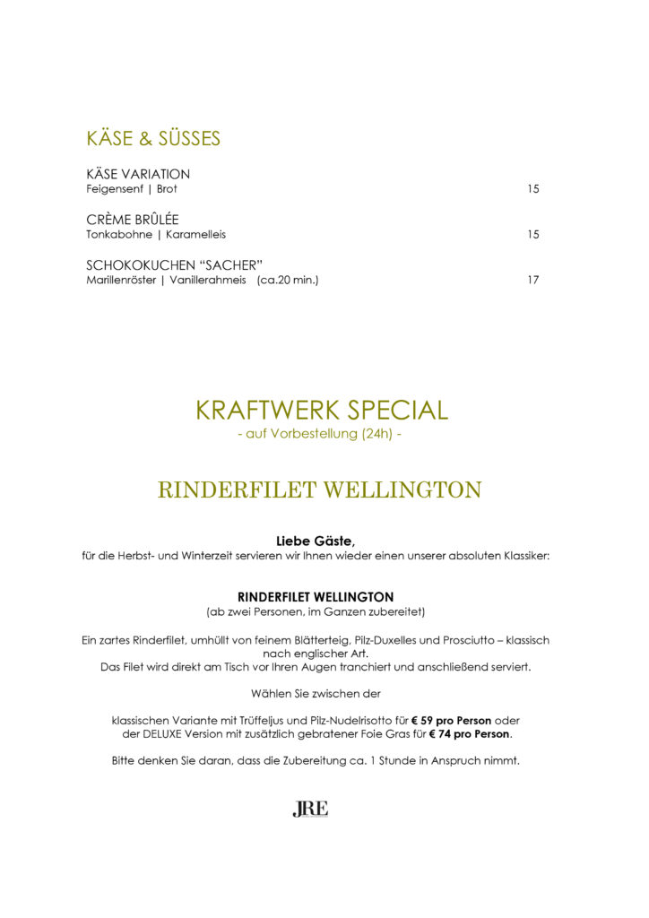 Das JRE Motto gilt natürlich über die Kraftwerk Küche hinaus.
